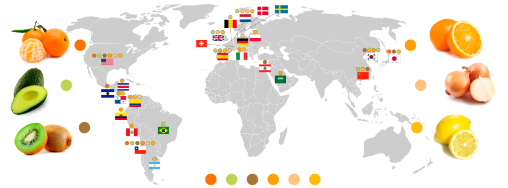 Contamos con productores desde la IV hasta la VI región del país, lo que nos permite alargar las temporadas de fruta para así proveer a nuestros clientes en el extranjero en forma confiable y consistente, además de alargar las temporadas en cada fruta y así poder surtir de manera segura y consistente a nuestros clientes en el extranjero.